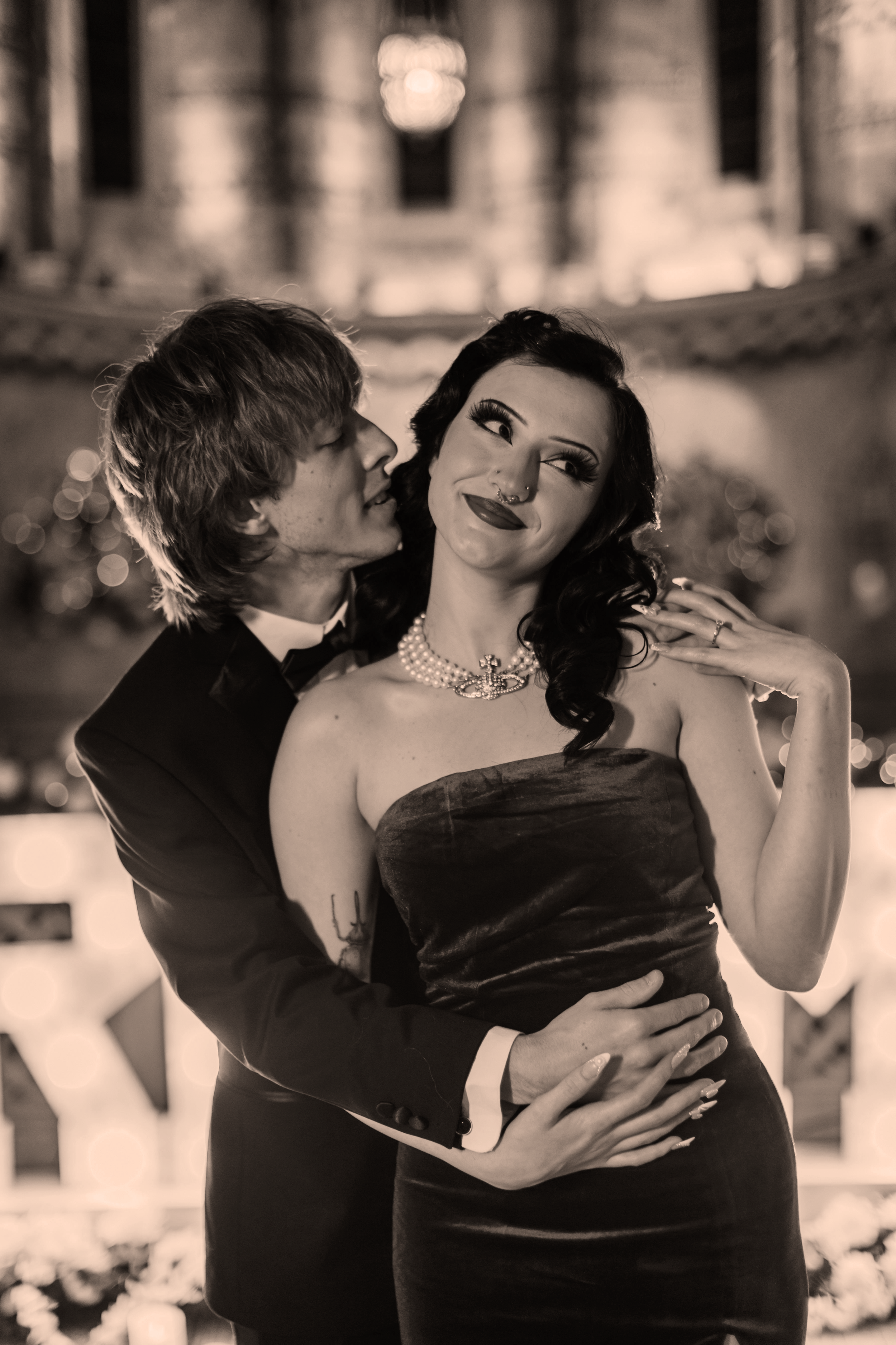 Avery and Nate met at a skate shop, but both chickened out and didn't get each others' numbers. A week later, they matched on a dating app. Their first date was just meant to be thrifting, but it turned into an 8 hour outing including bowling, bubble tea, and long comfy conversations. A few months later, Avery left for college in Georgia and they elected to stay together despite the move. After dating long distance for a few months, Nate made a leap of faith and moved down to Georgia with Avery, into a tiny apartment and began their new lives together. They’ve lived with each other for 5 years. Nate proposed in London on new years eve 2023 in a gorgeous chapel.